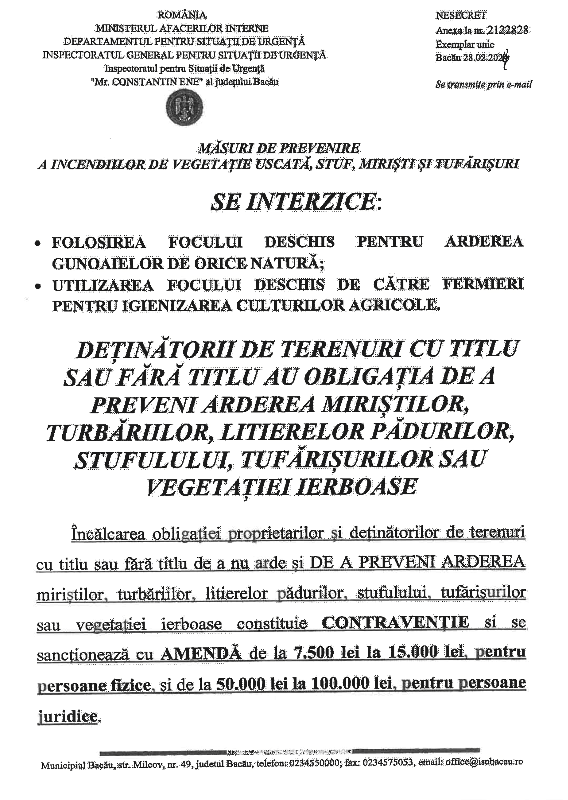 By primaria|2026-03-10T12:22:00+03:0010.03.2026|Știri|Comentariile sunt închise pentru SVSU – Măsuri de prevenire a incendiilor de vegetație uscată, stuf, miriști și tufărișuri